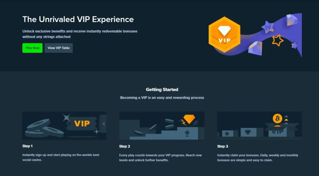 Your VIP benefits increase as you progress through tiers. Higher levels unlock reload bonuses, daily rewards, personal VIP hosts and improved rakeback rates. The more consistent your play, the faster you rise through the levels and access fully customized perks.